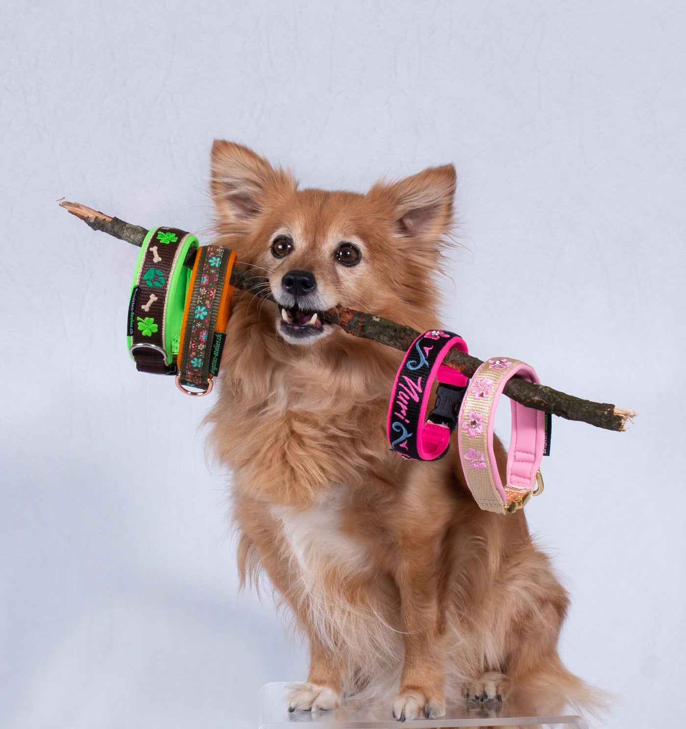 uns ein, während Nuri nun unsere Seniorin ist. Durch die Hunde begann ich, Geschirre, Halsbänder und Leinen selbst zu nähen. Später erweiterte ich mein Repertoire um Pferde- und Lamahalfter.
