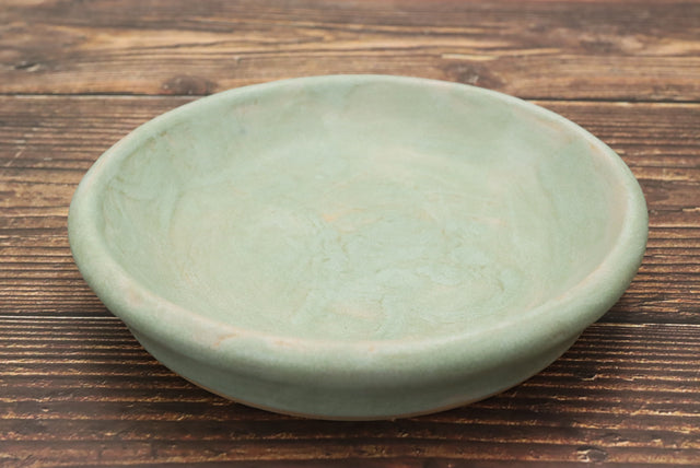 Zart, harmonisch und beruhigend: „Lindora“ vereint die klare Form handgetöpferter Keramik mit einer zurückhaltenden, naturverbundenen Farbigkeit. Die matte Glasur in feinem Lindgrün legt sich weich über die Oberfläche und strahlt eine stille, frische Ruhe aus – wie junges Blattwerk im Frühling. Die glatte Haptik lädt zum Berühren ein und betont zugleich die schlichte Eleganz der Schale.