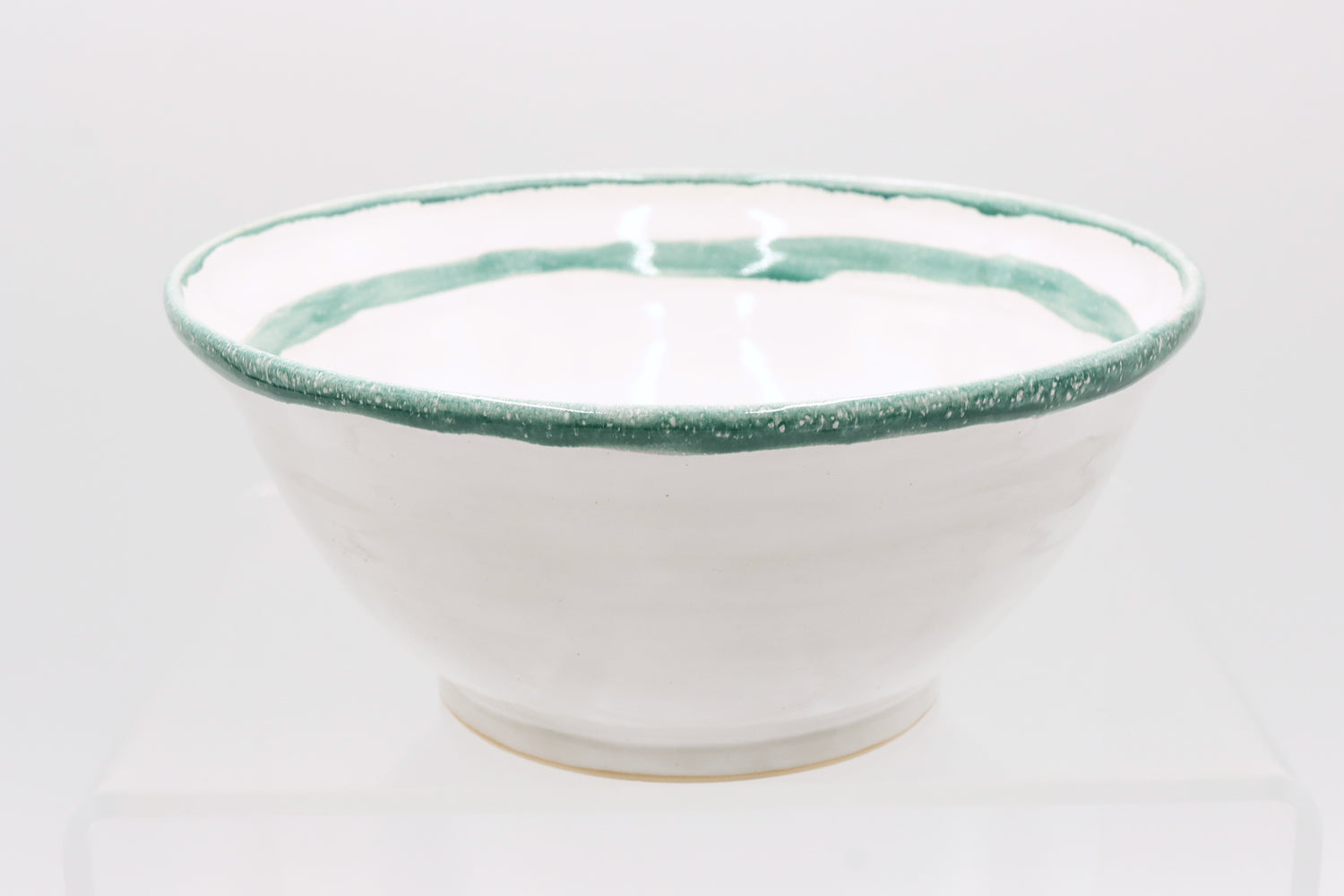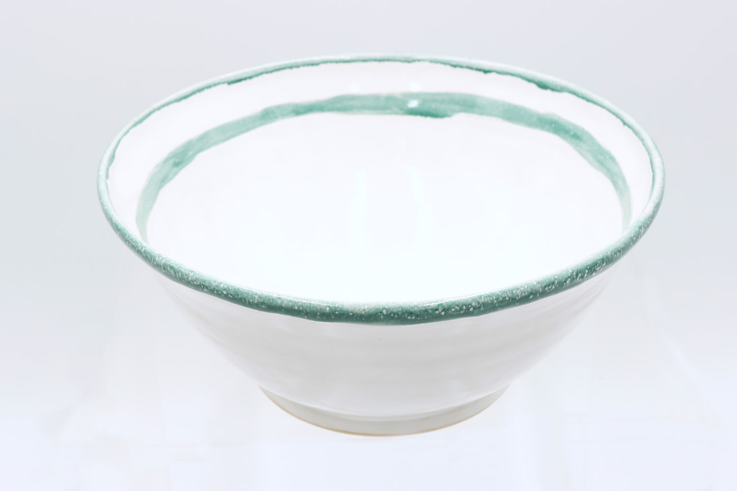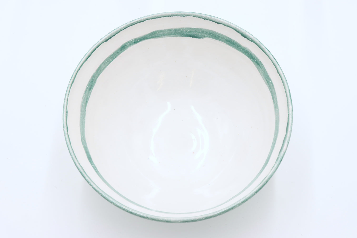 Keramikschale „Morgentau“ – Weiß mit grünem Kuss