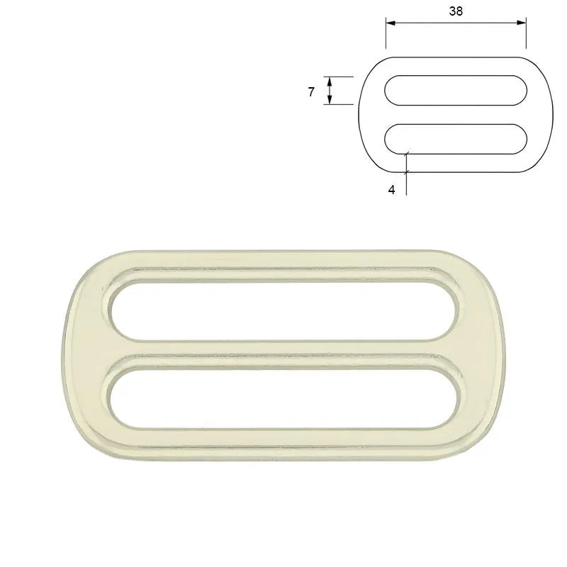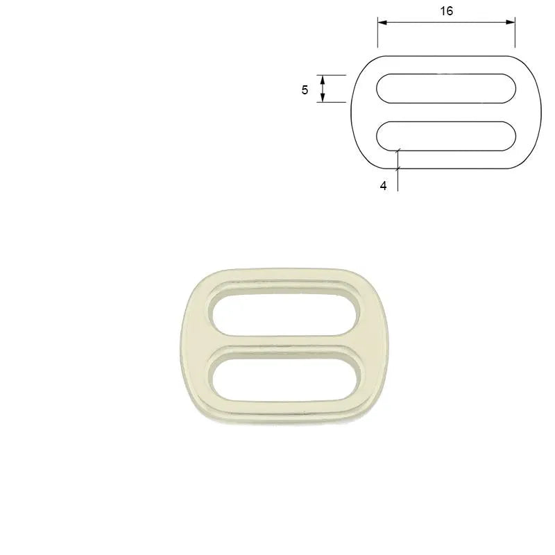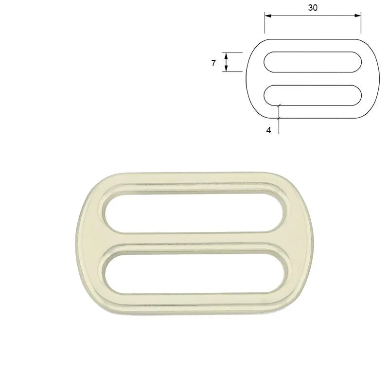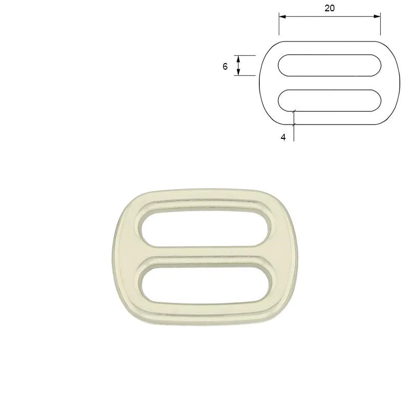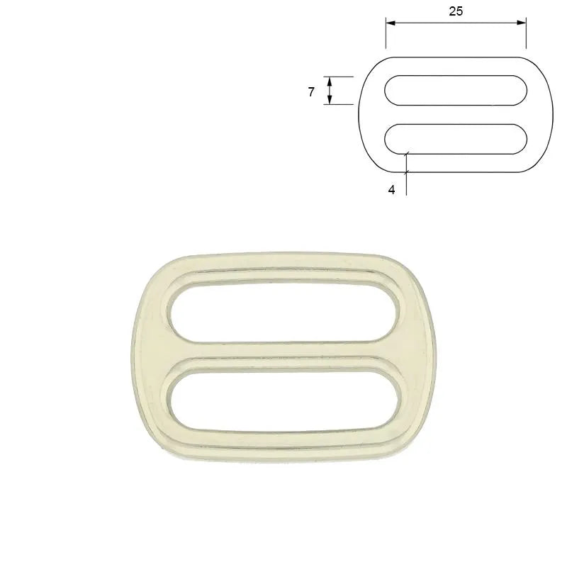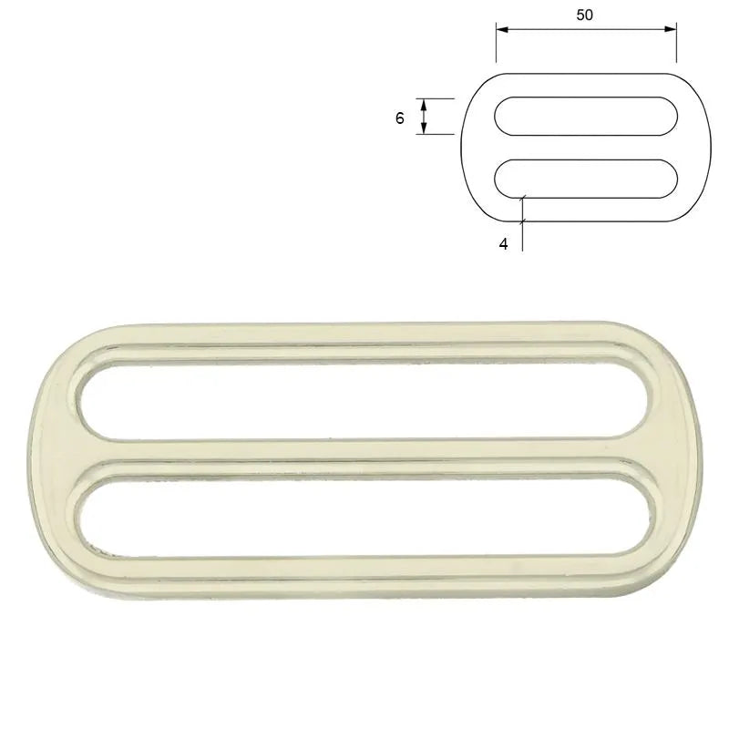 Diese Metall-Schiebeschnalle mit perfekt geglätteten Kanten ist ideal für die Herstellung von Gepäck, Sportartikeln oder Hundeausrüstung. Sie wird am häufigsten als straffende oder verkürzende Komponente verwendet und ist effektiv in der Handhabung.